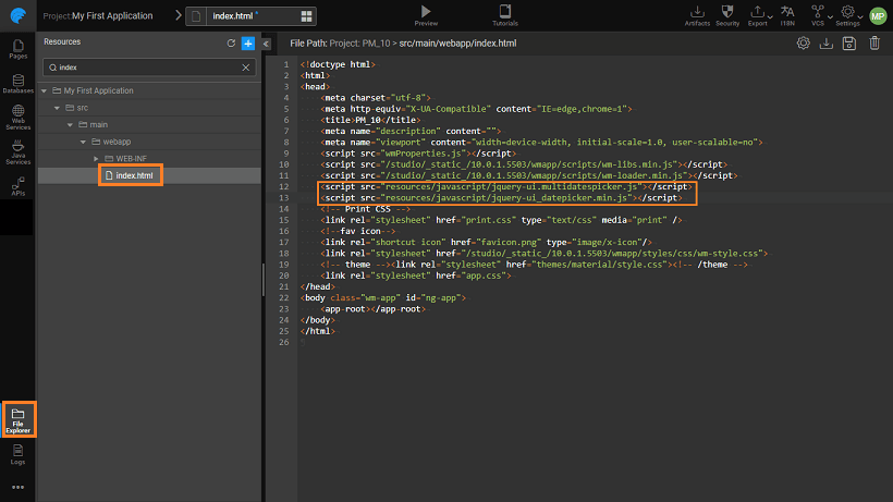 2. Making an entry in the index.html file giving the location of the files imported.