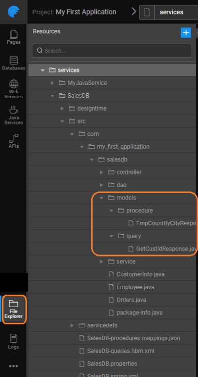 For all queries and procedures, there will be a Rest API generated with the Service layer. Along with the API, depending on the query or procedure type, request and response POJO classes are generated.