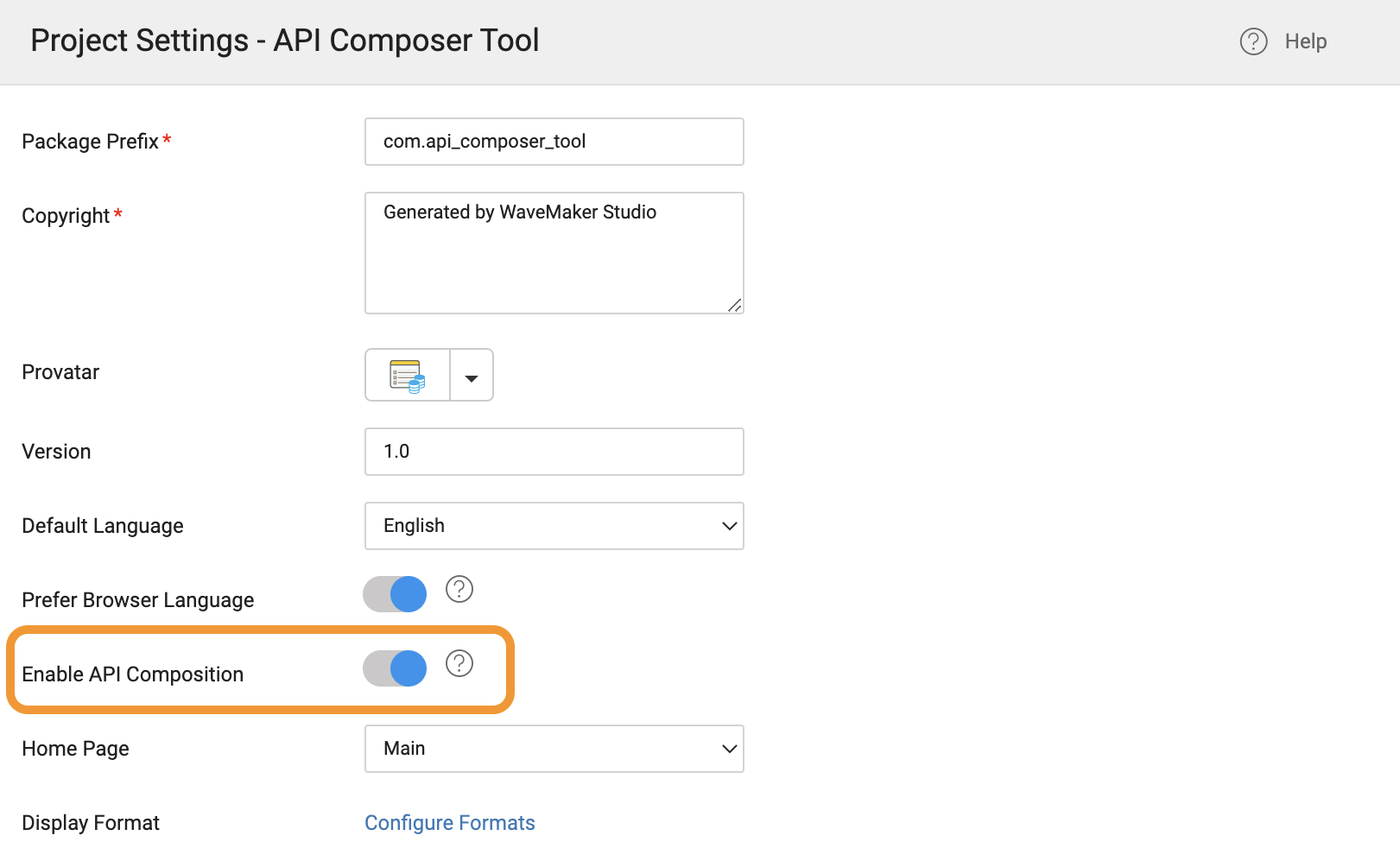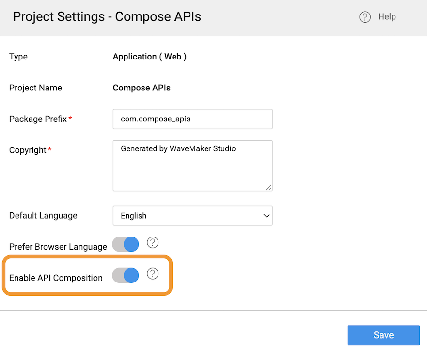 When you create a new WaveMaker project, the user can choose to enable or disable API Composition.