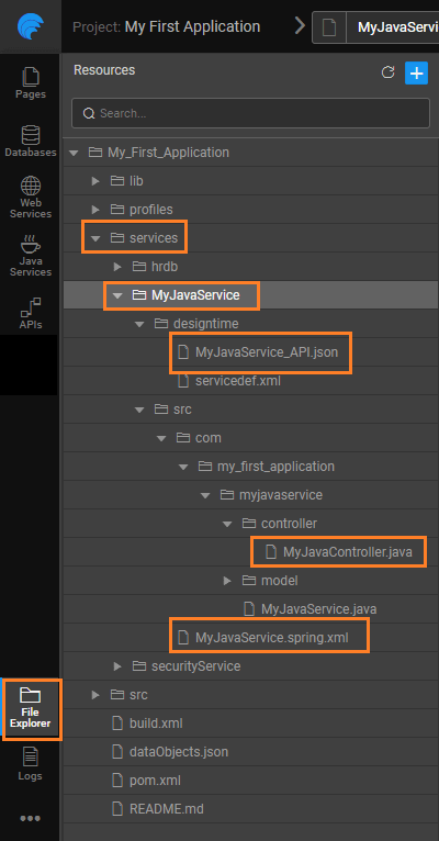 MyJavaService_API.json, in this example - contains the file structure and details as used by the API Documentation. This is available only during the design time.