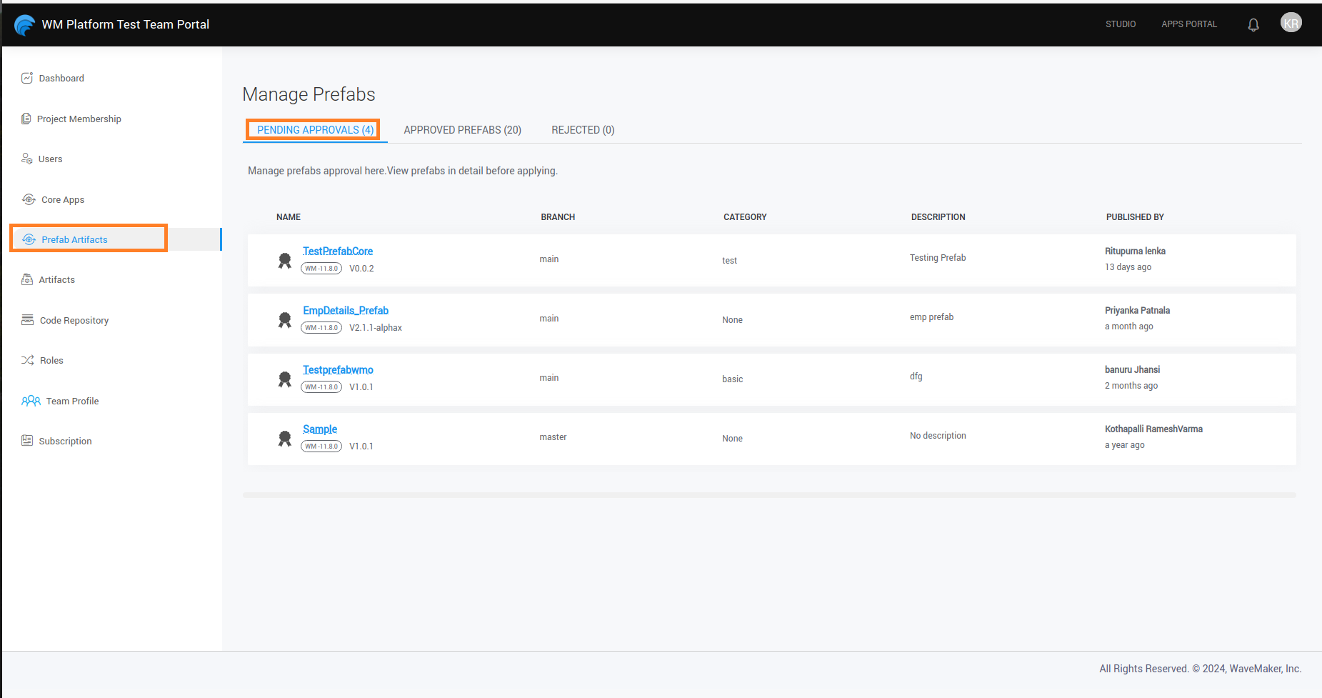 - In Prefab Artifacts, go to the Approved Artifacts where we can select the Artifact to share.