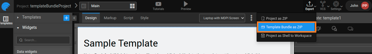 - Non-team version: The developer needs to export the Template Bundle as zip file and then import it in any application within their Dashboard.