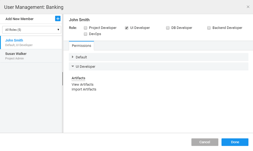 - Default: This is the default role when a user is assigned to a Project. This includes only view privileges.