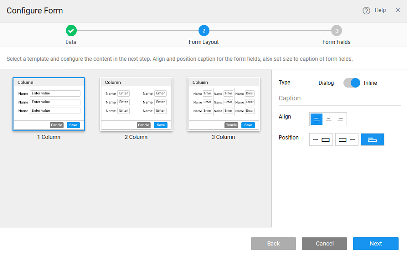 - Select the display layout of the Form. You can choose from one-column, two-column or a three-column layout.