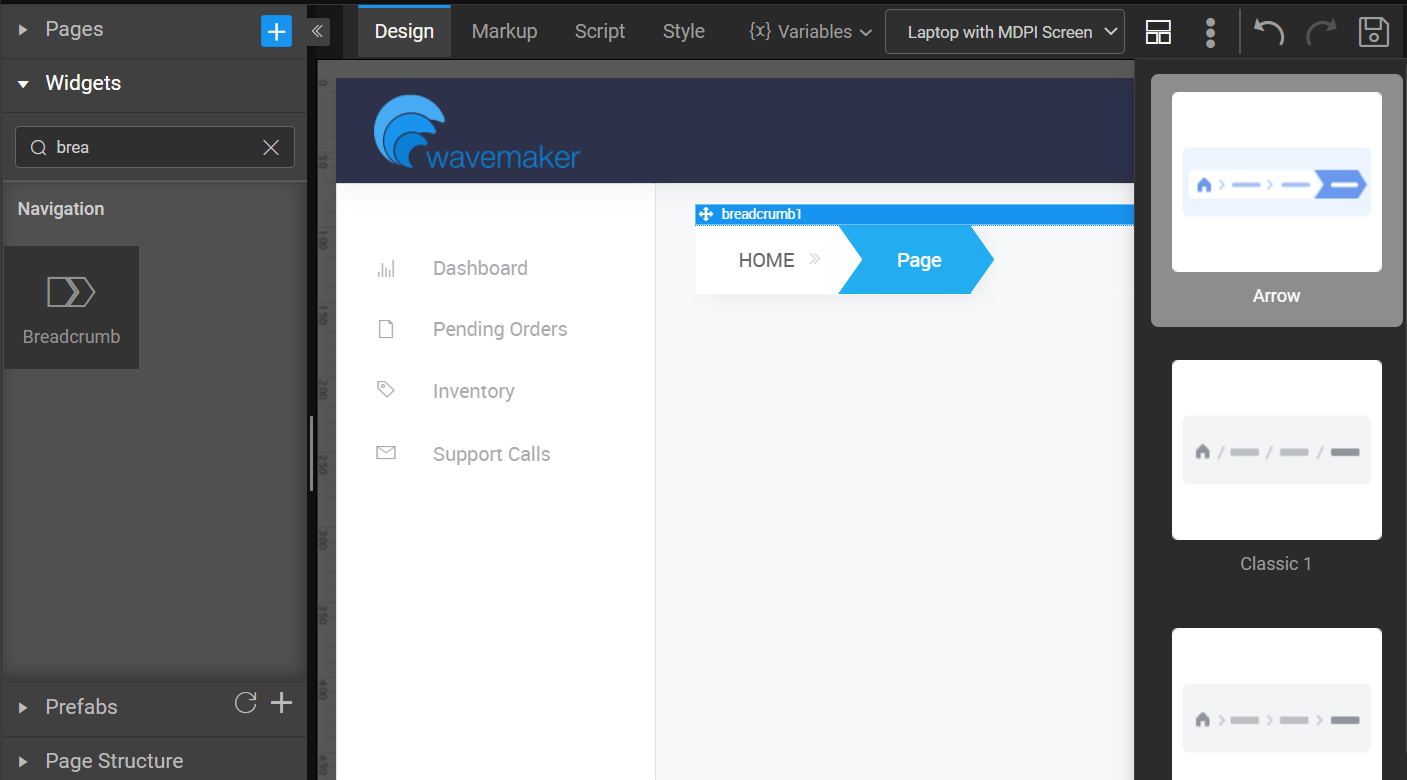 | Width | The width of breadcrumb can be specified in px or % (i.e 50px, 75%). |