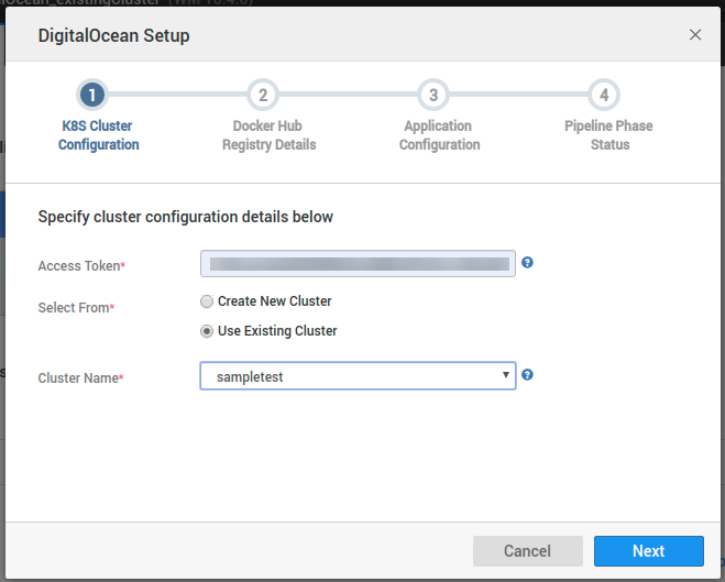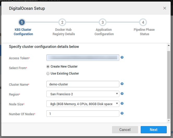 After choosing DigitalOcean Provider from the list of providers, an access token needs to be provided.