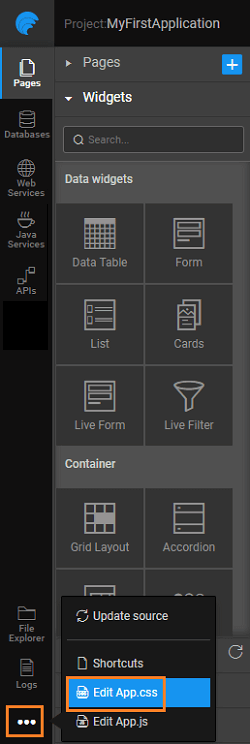 1. You can select from a wide range of Themes provided by WaveMaker. For more information, see WM themes.