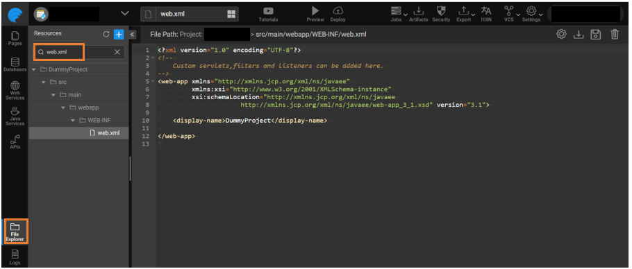 - Go to File Explorer and search web.xml file.