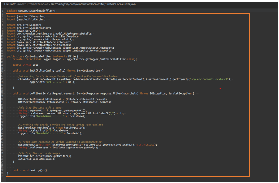 For example, create a file for the Filter class named CustomLocaleFilter.java