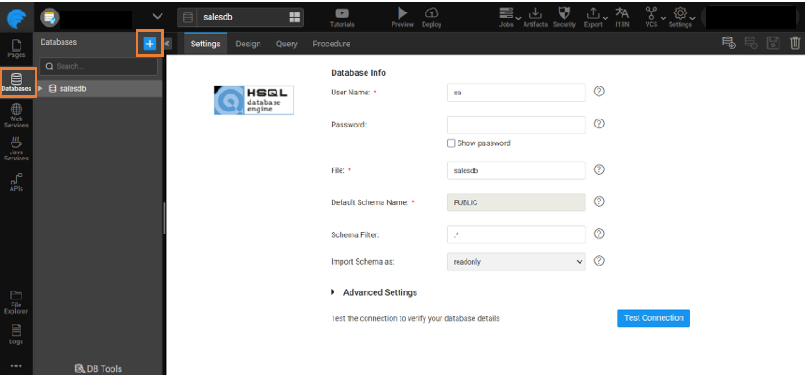 - Go to Databases and click on '+' to add a new database.