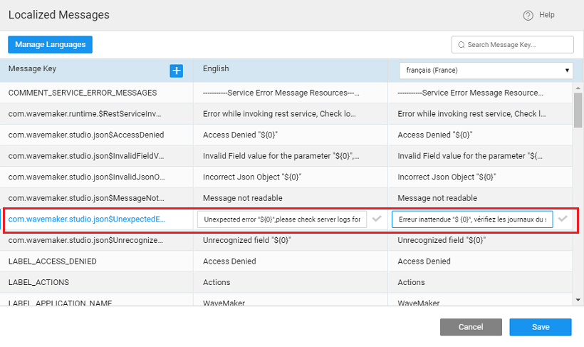 App Localization is the process of rendering your app in multiple languages. WaveMaker allows you to create a dictionary of localized messages so that users can change the language of the application to experience the application in their language.