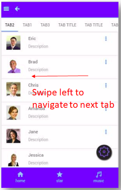 - Tab content to navigate to the next tab or previous tab on swipe;