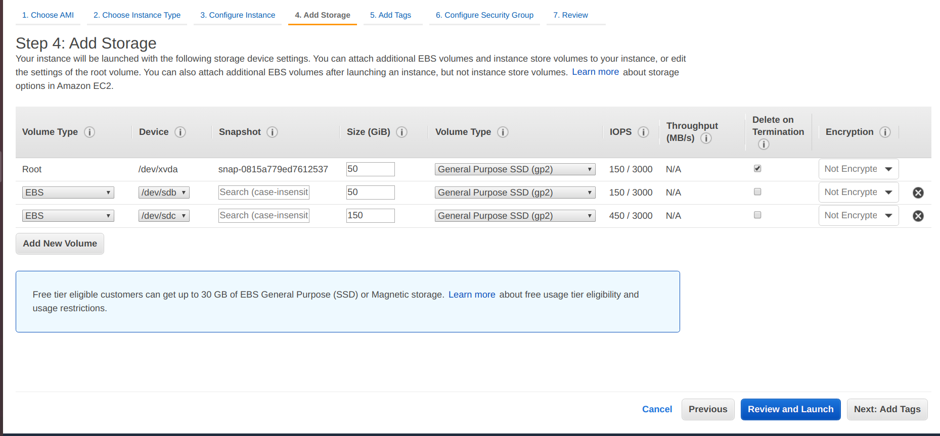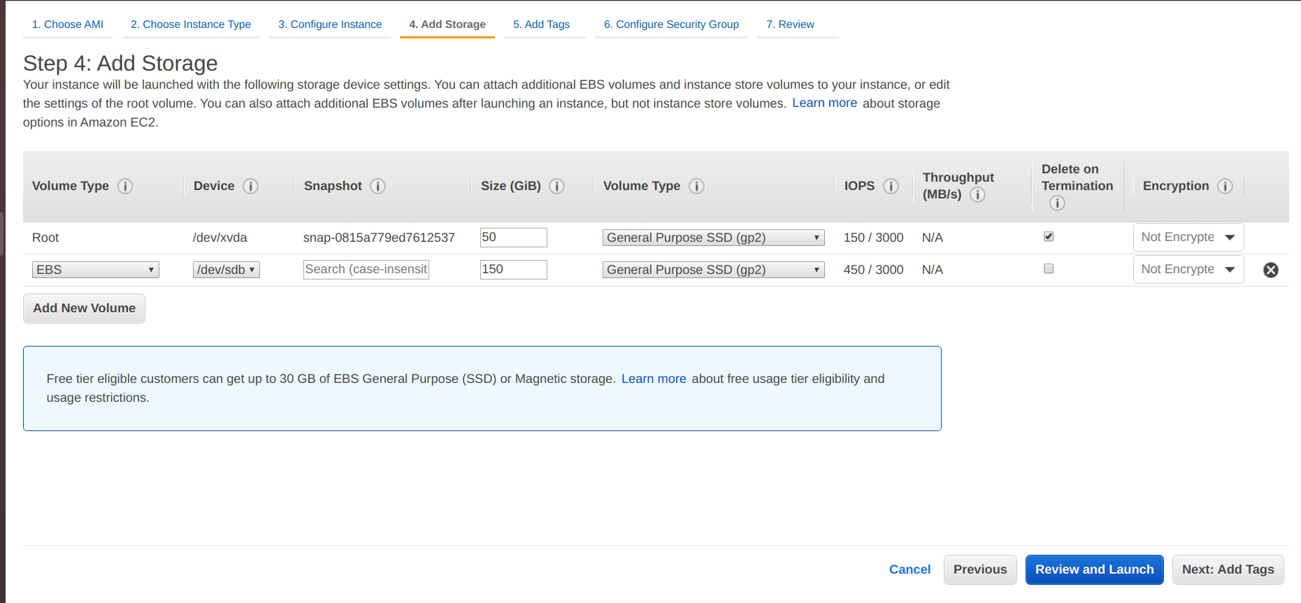 - Add storage 100 GiB for the root volume.