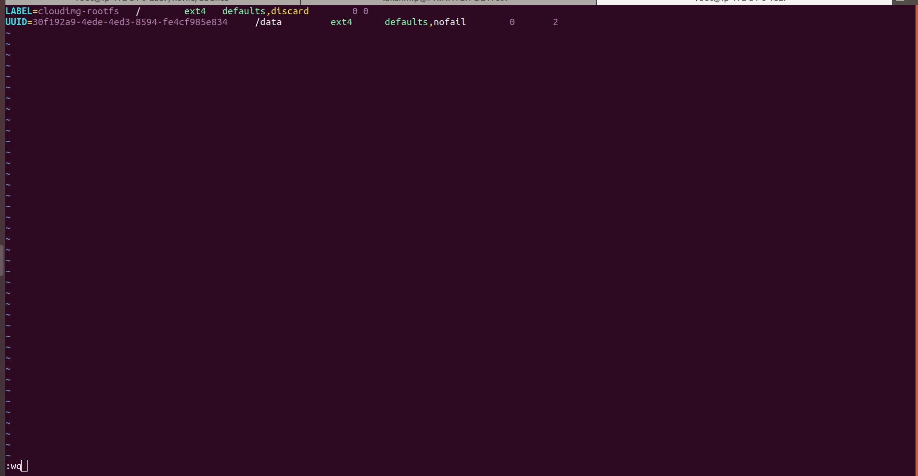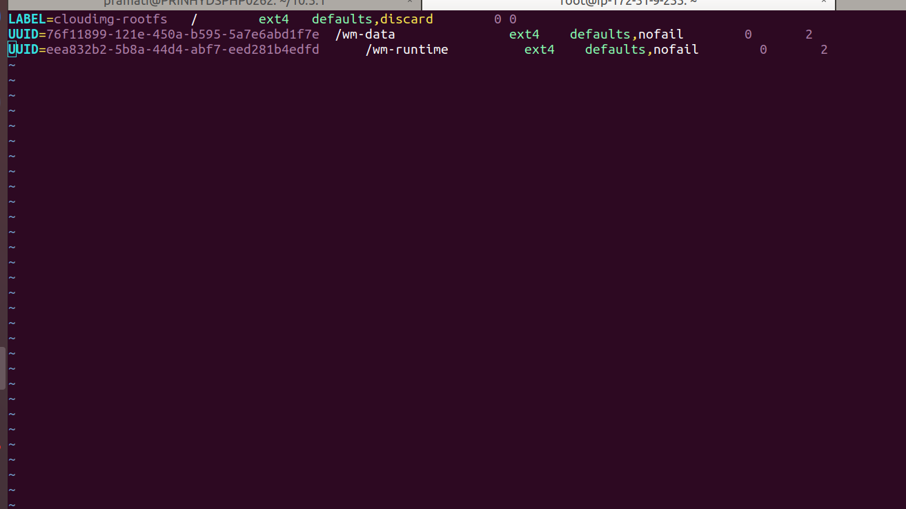 - To entry the UUID of the disks in .fstab, use the following format.