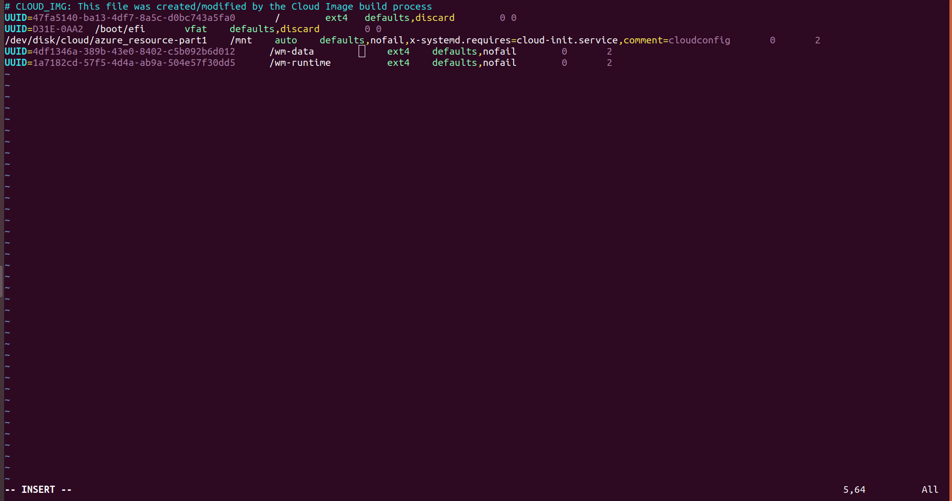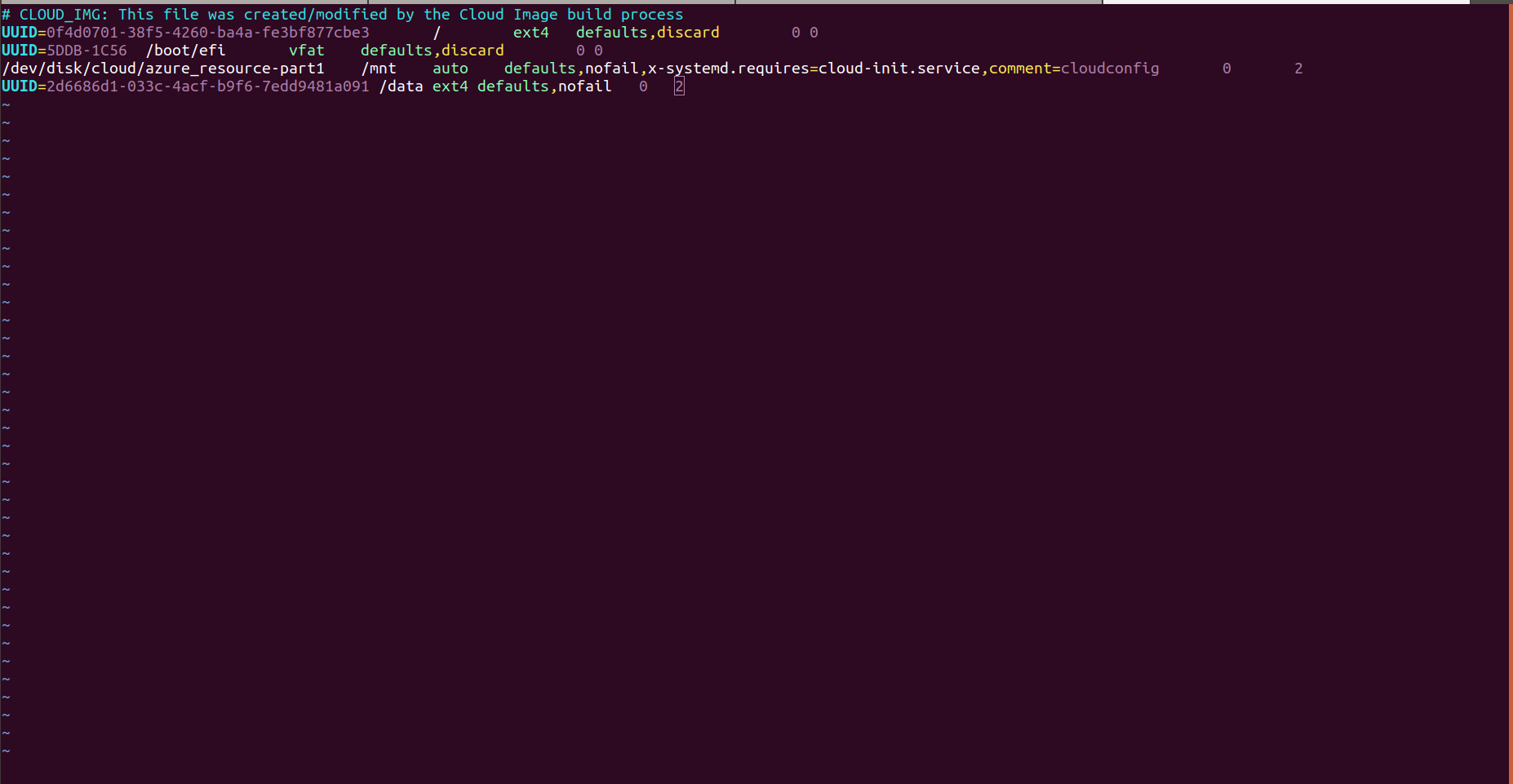 - To enter the UUID of the disks in fstab, use the following format.