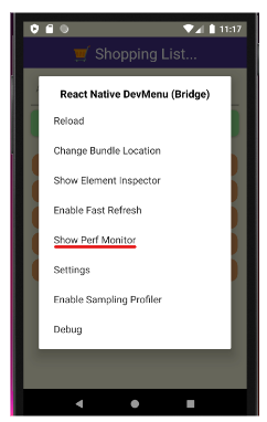 React Native Performance Monitor is inbuilt in all React Native Apps. For more info. check here