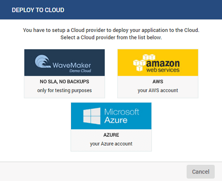WaveMaker Apps can now be deployed to your Azure Cloud account. When configuring the Deployment or Release Pipeline for an app, you can choose Azure Cloud as the deployment profile for Live (and Stage for WME users) phase. Know more #doc